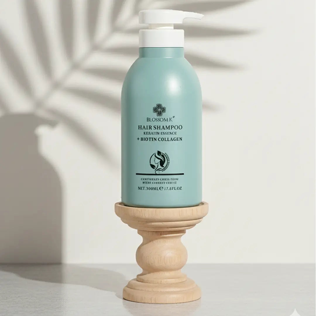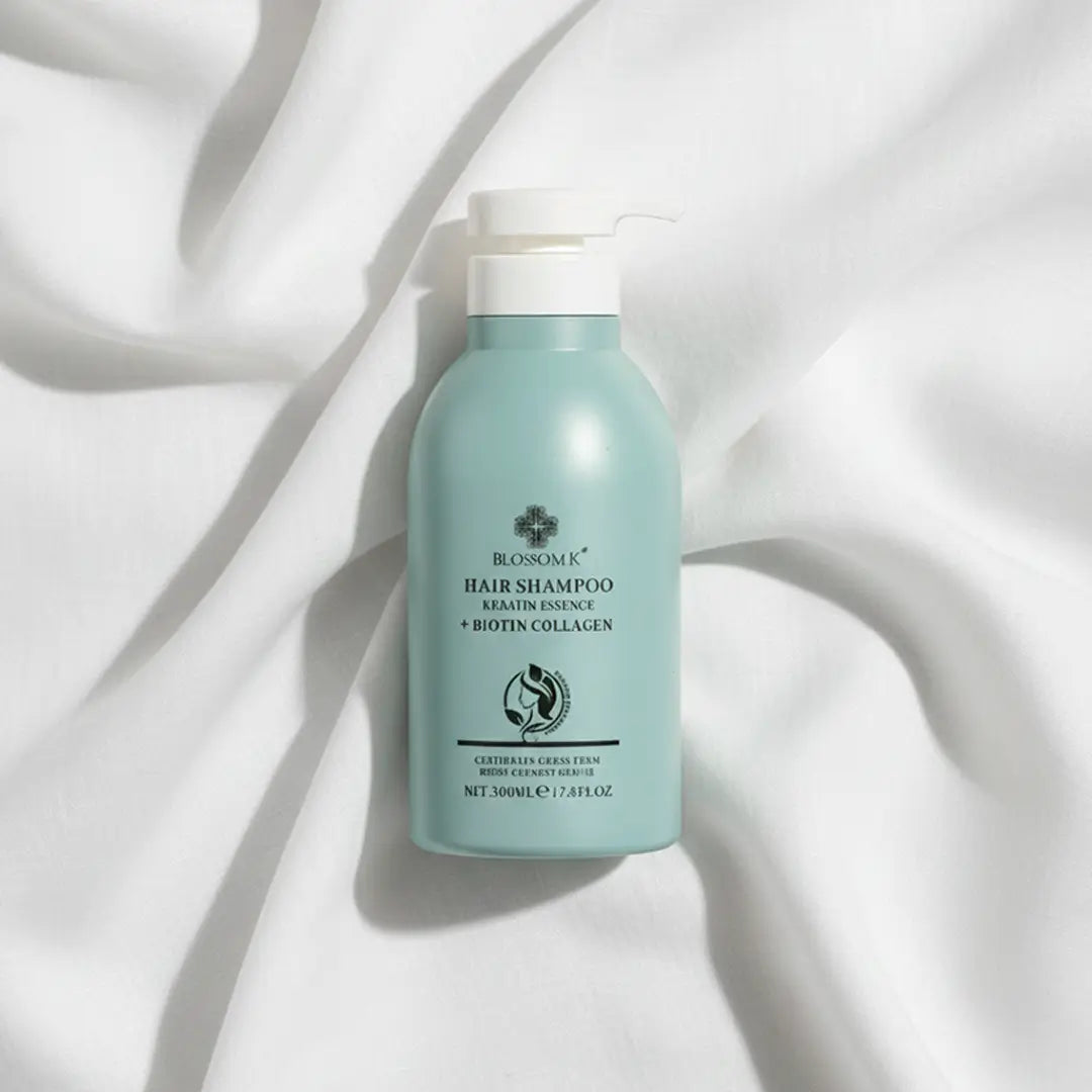 Repair, strengthen, and hydrate dry and damaged hair with BlossomK Keratin Essence Shampoo powered by Biotin and Collagen. Smooths frizz, reduces breakage, and adds natural fullness in every wash.
