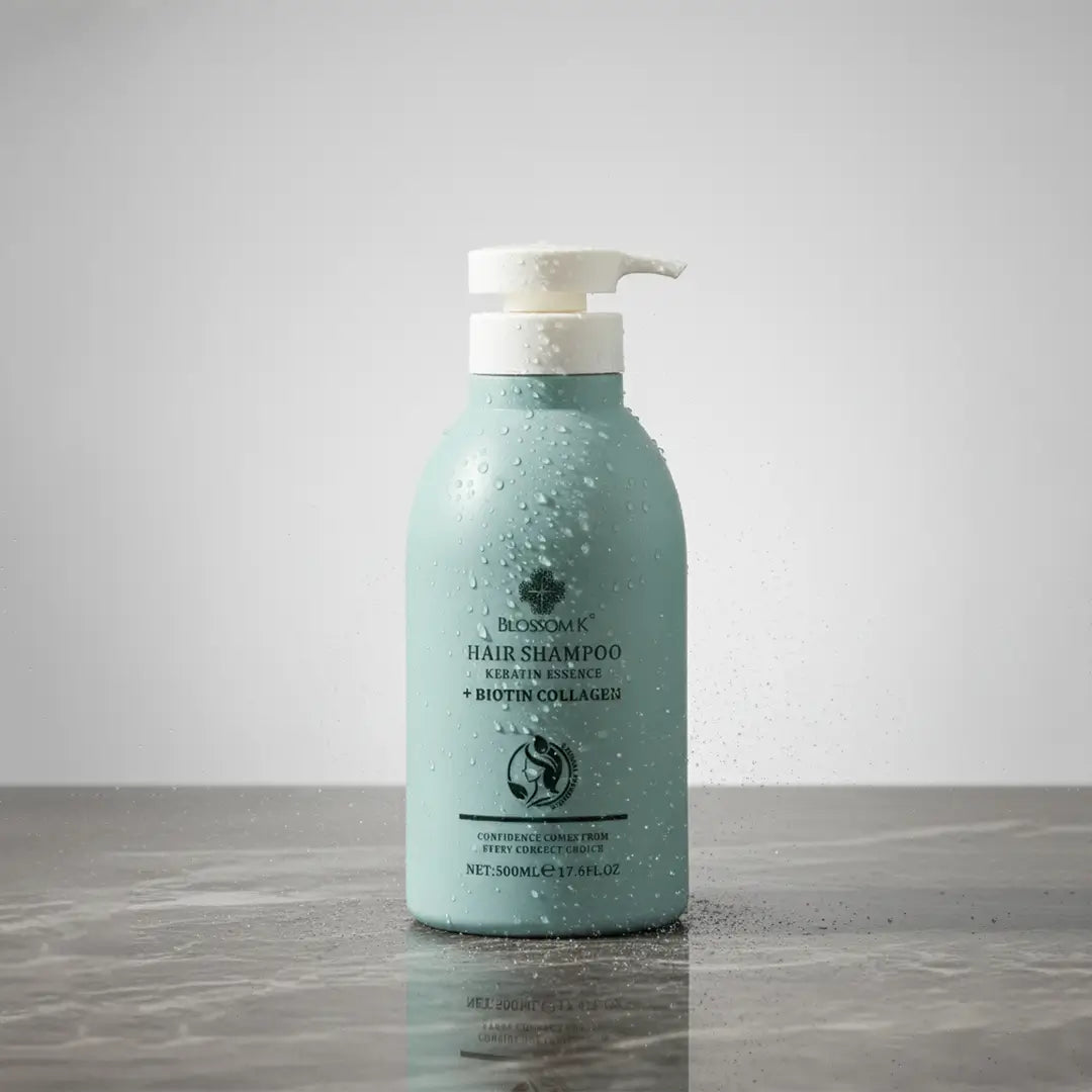 BlossomK Keratin Essence Hair Shampoo with Biotin and Collagen is a repair-focused formula designed for dry, damaged, frizzy, chemically treated, and weak hair. This shampoo combines three high-value actives—Keratin, Biotin, and Collagen—to restore smoothness, reduce breakage, and add visible strength and body to your hair.